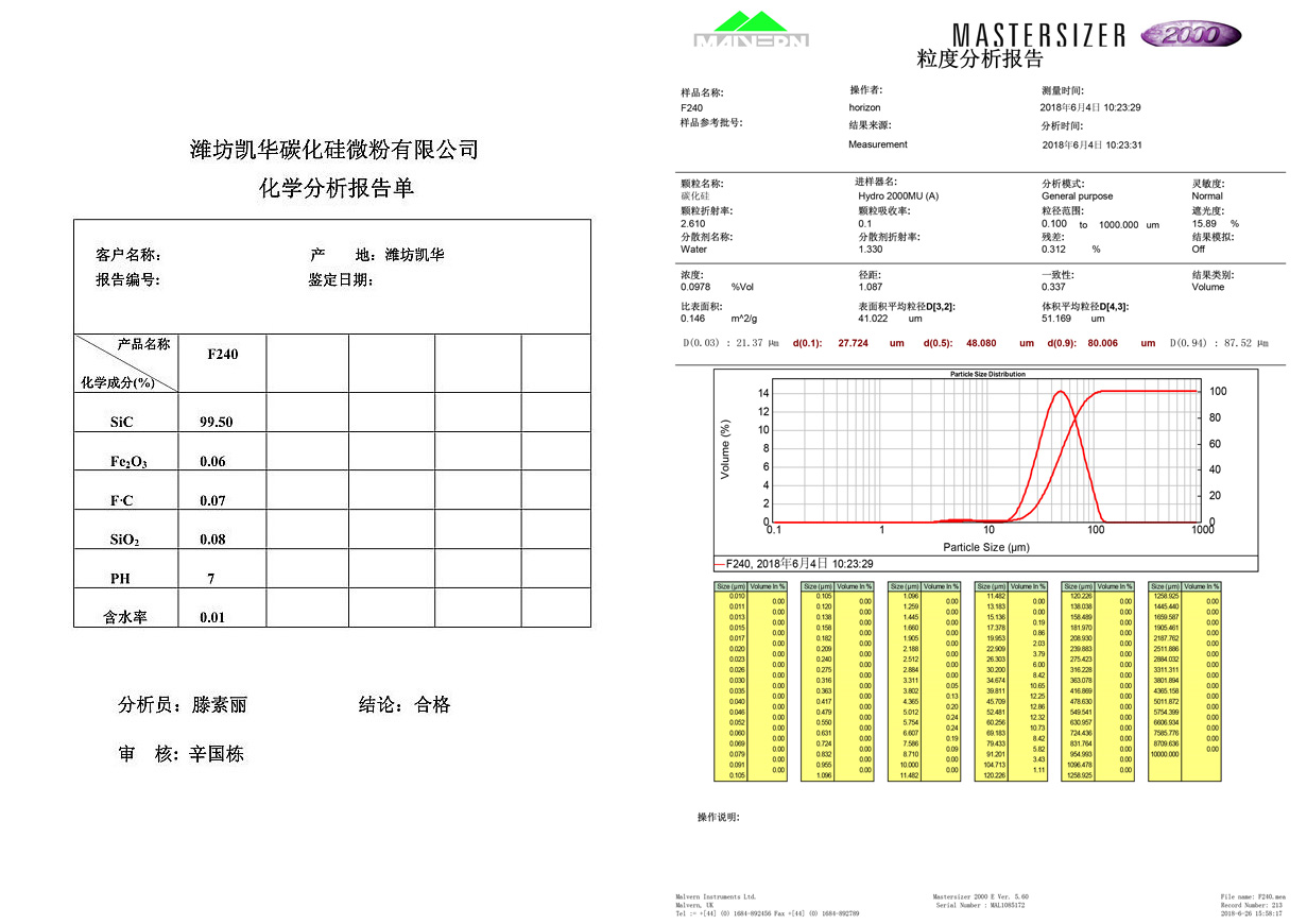 我公司生產(chǎn)的F240、F1200、W20、W14、#90、#150等反應(yīng)燒結(jié)專用碳化硅微粉,主要用于反應(yīng)燒結(jié)碳化硅制品注漿成型、擠出成型領(lǐng)域,以其流動性好、純度高、粒型好、粒度分布合理、堆積密度大等優(yōu)點,深受客戶好評!